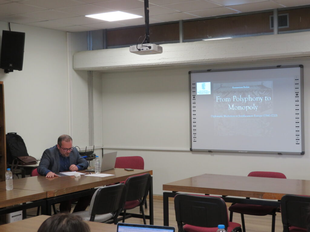The following session explored the connections between the project’s and our host colleagues’ research. Konstantinos Poulios (National and Kapodistrian University of Athens), the representative of the host institution, shared his research on the particularities of diplomatic mediation in southeastern Europe. Natalia Królikowska-Jedlińska (SMALLST) explored the Crimean Tatars’ obligations and opportunities that came with being mediators at the Ottoman Court. The workshop concluded with the final paper delivered by Gábor Kármán, touching upon the role of Transylvanian mediators in seventeenth-century Ottoman peace treaties.