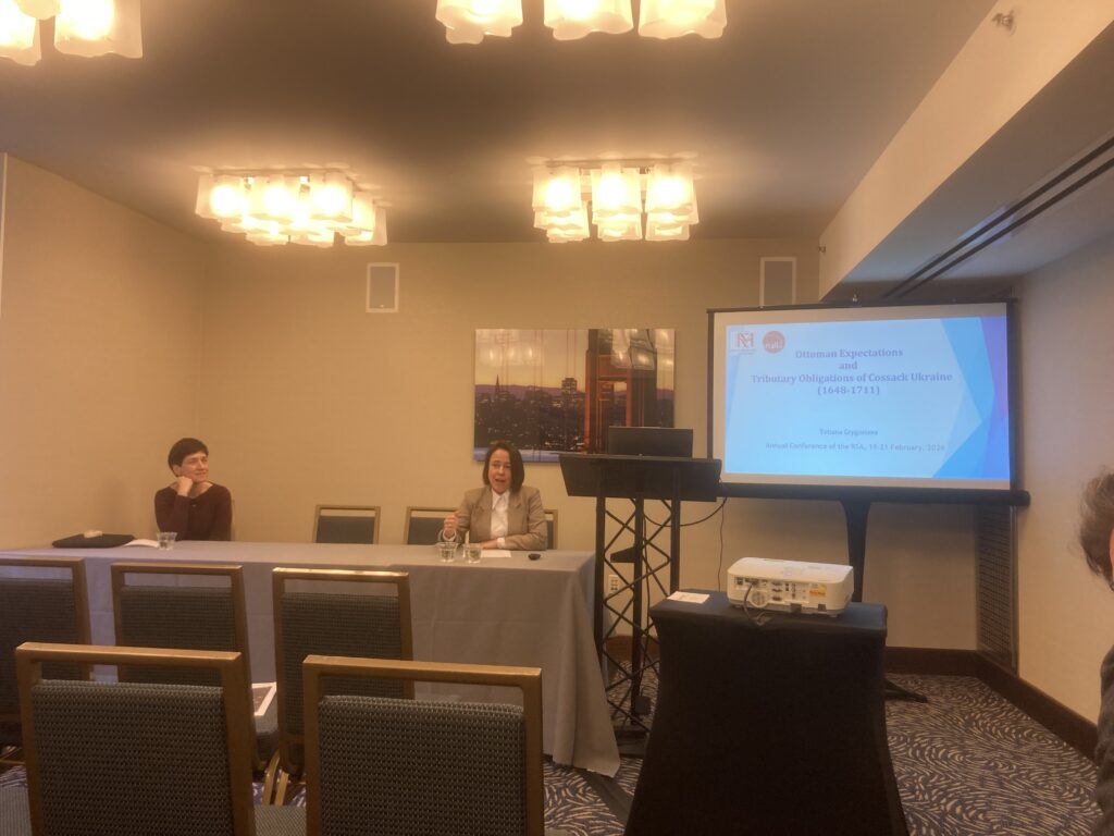 In her paper, Tetiana Grygorieva examined the strategic shift in the relations between Cossack Ukraine and the Ottoman Empire from 1648 to 1711, focusing on how several Cossack hetmans (Bohdan Khmelnytsky, Petro Doroshenko, and Pylyp Orlyk), who applied for Ottoman protection, were formally accepted into the “Well-Protected Domains”. She explored the conditions of this protection, both formally stipulated in diplomatic instruments and informally expressed in correspondence. The paper demonstrated that during the late seventeenth and early eighteenth centuries, the Ottoman Empire prioritized security and strategic defence over financial tribute when granting protection to Cossack hetmans. It sought to integrate the Cossacks into a regional defence network where they were supposed to serve under the primary influence of the Crimean Khan.